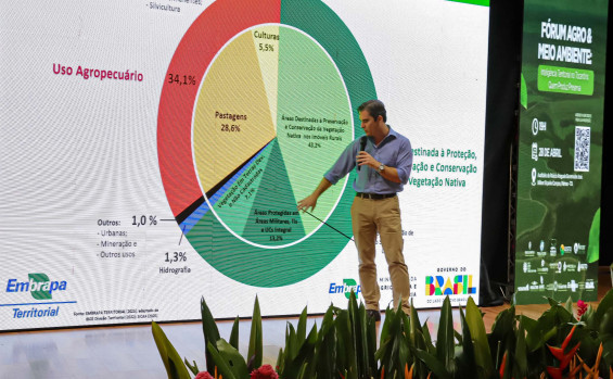 O fórum contou ainda com a participação do chefe-geral da Embrapa Territorial, Gustavo Spadotti, que apresentou o estudo de caso Produção e Preservação no Tocantins, além de mesa-redonda mediada por Humberto Simão, do Ministério da Agricultura e Pecuária.