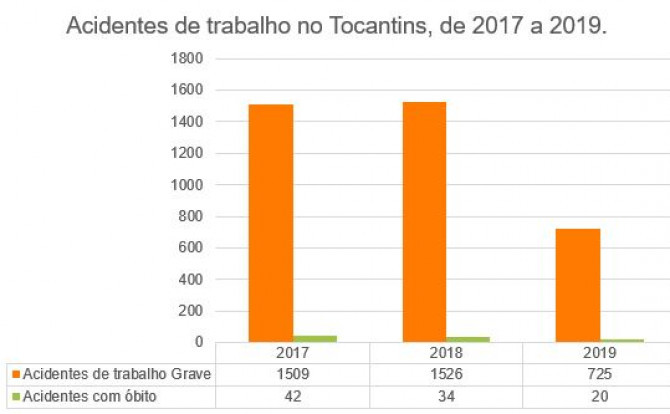 De acordo com o Sistema de Informação de Agravos de Notificação (Sinan) no Tocantins, ocorreram 3.760 acidentes de trabalho graves no período de 2017 até 23 de julho deste ano. Dentre estes, 96 trabalhadores foram a óbito e 23 trabalhadores estão sequelados pelo acidente sofrido.