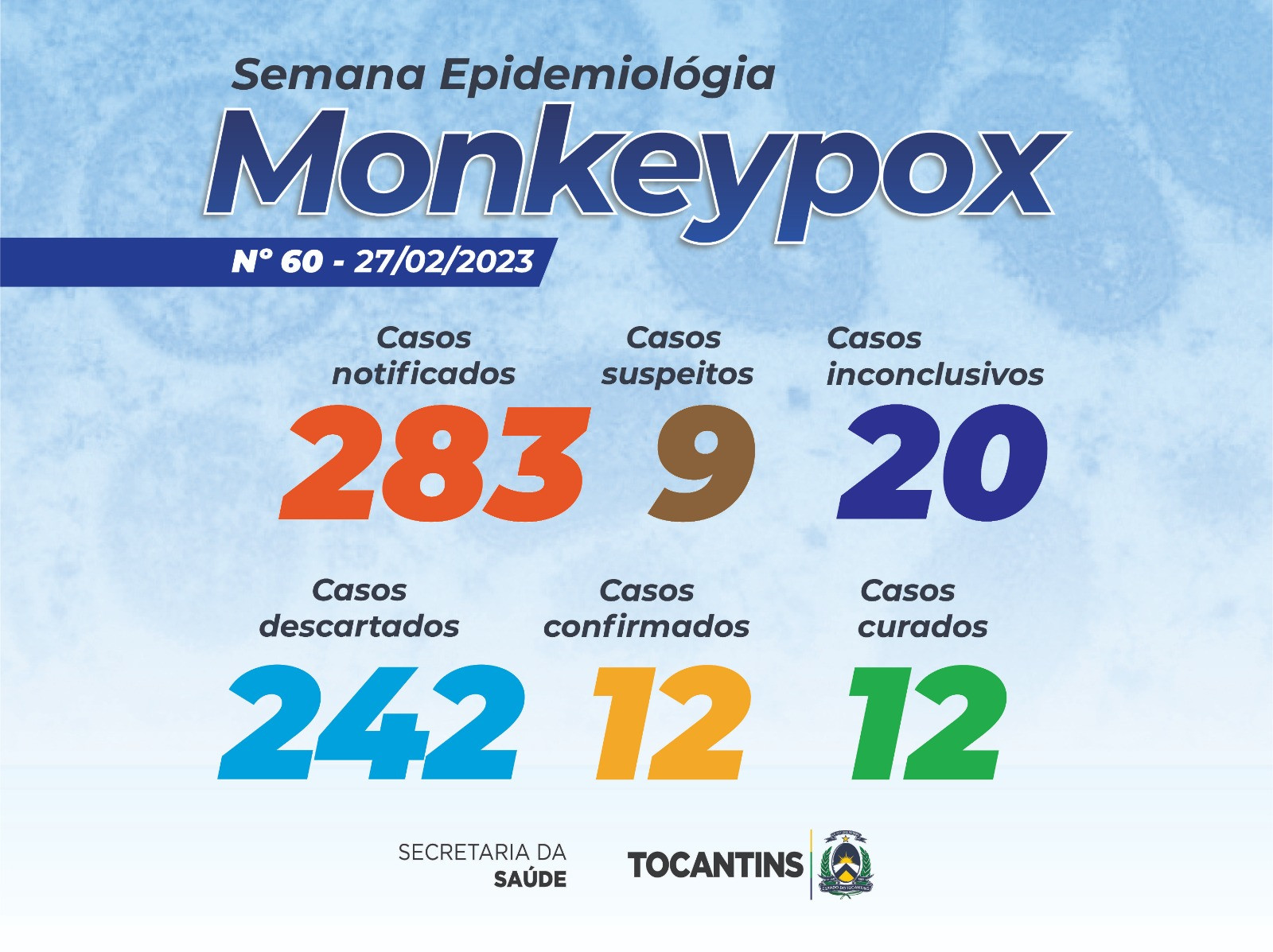 Nesta segunda-feira, 27, a Secretaria de Estado da Saúde (SES-TO) divulgou a atualização dos dados da Monkeypox, no Tocantins. Abaixo, levantamento do Centro de Informações Estratégicas de Vigilância em Saúde (CIEVS-TO), até 25 de fevereiro de 2023: