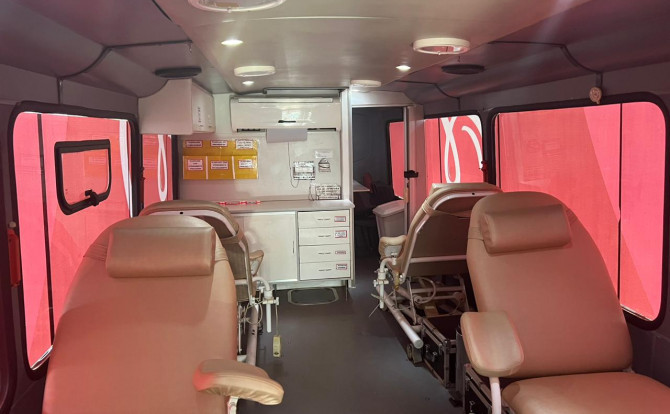 Na busca por garantir conforto e bem-estar à população que colabora com os estoques de sangue, a Secretaria de Estado da Saúde (SES-TO) reformou a unidade móvel da Hemorrede Tocantins. O veículo recebeu reparos mecânicos, restauração interna, novos maquinários e uma plotagem receptiva para acolher os doadores e doadoras que não podem se locomover às unidades de coletas fixas.