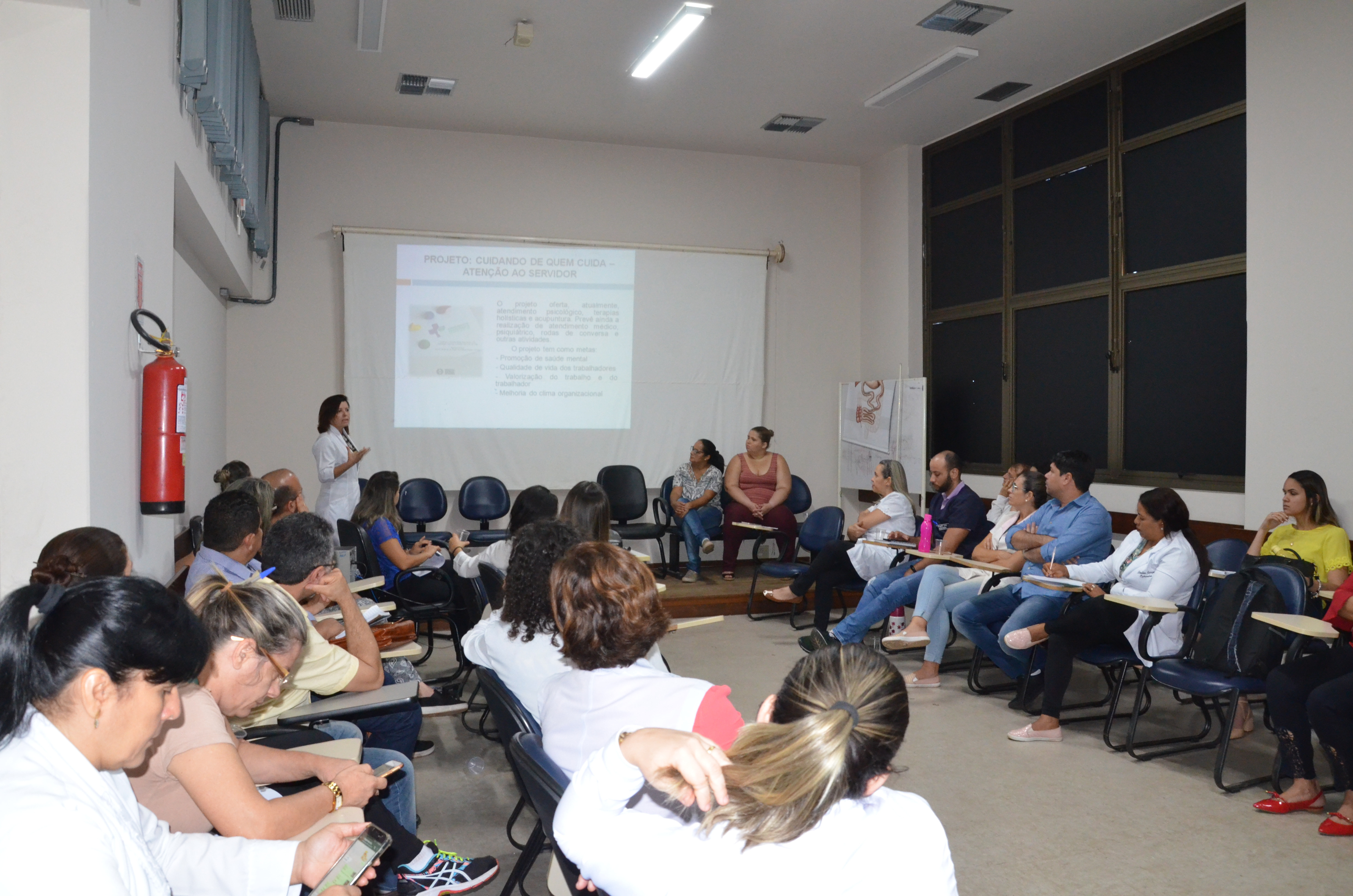 A responsável pelo setor de Humanização, Goiamara Borges explicou a necessidade do núcleo. “A proposta desta reunião em conjunto com coordenadores, supervisores e equipe da Secretaria de Estado da Saúde (Núcleo de Vigilância de Saúde do Trabalhador e Regulação do Trabalho) é para que nós possamos de forma integrada implementar o Núcleo de Atenção a Saúde e Segurança do Trabalhador. Esse serviço precisa ser composto por uma equipe multiprofissional e além disso, precisamos rediscutir a organização dos nossos processos internos de trabalho, para além da saúde ocupacional dos trabalhadores. Outro fator que é fundamental, é a co – responsabilização de todos os trabalhadores, para se envolverem com essa pauta da saúde no trabalho.”, explicou.