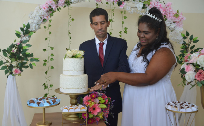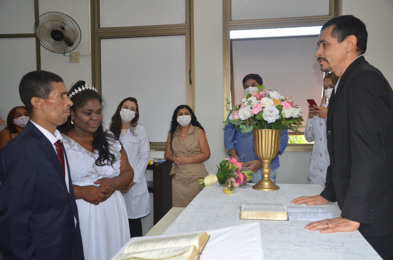 A equipe do Hospital Geral de Palmas (HGP) promoveu, nesta terça-feira 28, a celebração do amor e do cuidado: a união do paciente Reismagno de Souza Gomes, 42 anos e sua companheira e acompanhante Deusdetina Brito Barbosa, de 49 anos, que estão juntos há mais de 20 anos. Hoje receberam as bênçãos do casamento religioso. A celebração, regada de emoções, aconteceu na capela do HGP, com direito a decoração e bolo.