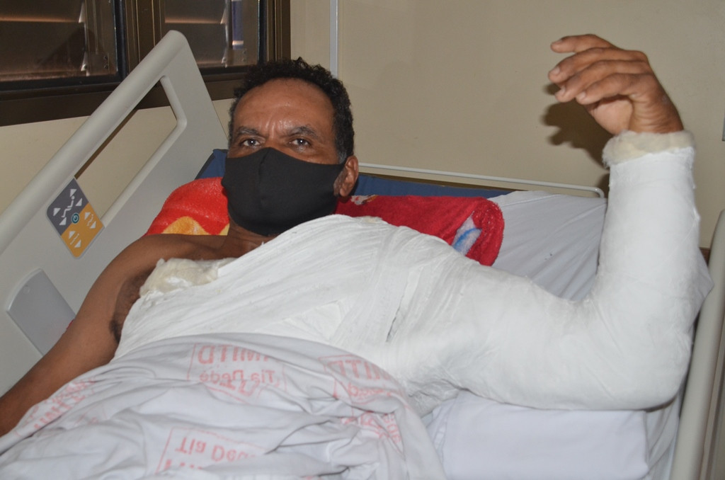 O Alberes Matias Oliveira é um dos pacientes internados no HGP, ele sofreu este tipo de acidente. Estava realizando um serviço de comunicação visual, e sofreu um choque, fraturou o braço esquerdo. “Foi em poucos segundos, senti o impacto no braço. Nasci de novo”, revelou.