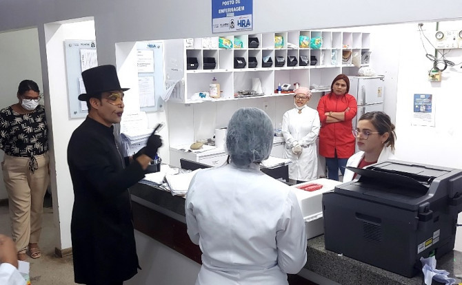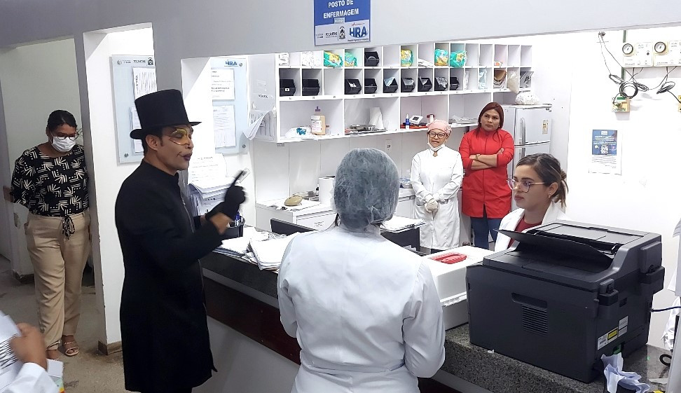 O Coach, Hellyson Miranda, a convite da Humanização do HRA, apresentou a o teatro ‘Performance Menestrel’ de William Shakespeare. “Um dos principais objetivos foi promover através das linhas escrita, do poema um motivacional, impacto para as pessoas, gerando uma reflexão sobre aprendizado e maturidade, sobre sucesso e fracasso, sobre quem somos e o que representamos na vida das pessoas, sobre esforço e procrastinação”, disse.