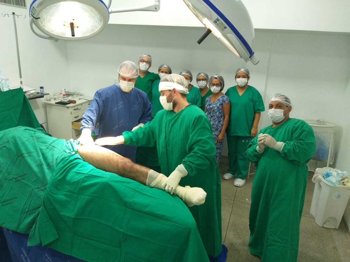Além de Dr. Diórgenes, a equipe que fez a intervenção foi composta pelo também médico ortopedista, Dr. João Protásio Netto, pelo anestesista Dr. Paulo Márcio Royo Mota, além da equipe de enfermagem e auxiliares do setor.