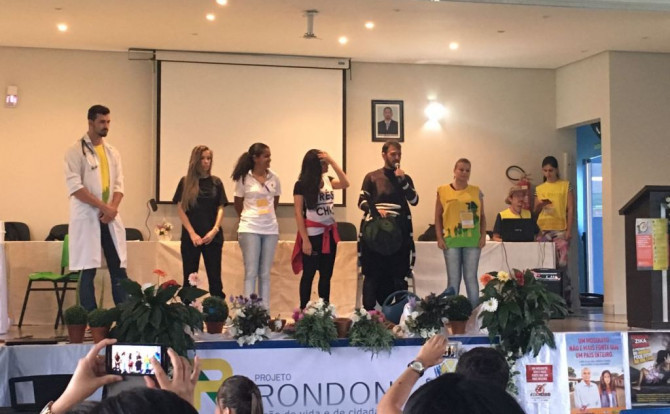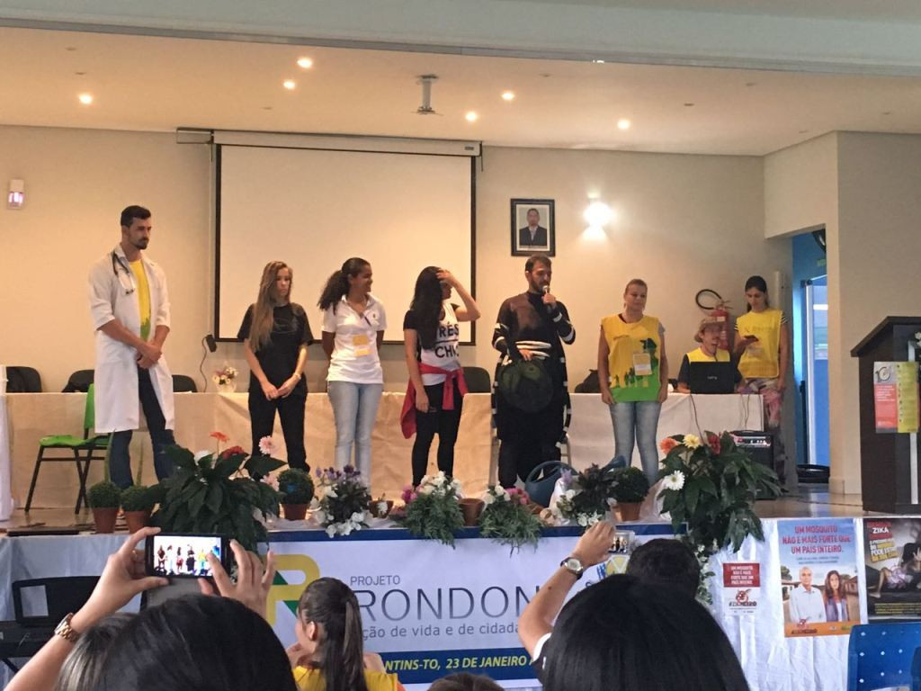 Em Divinópolis do Tocantins, município do Centro-Oeste do Estado, a caminhada e atividade educativa sobre o combate ao mosquito Aedes que seria realizada na praça da cidade não aconteceu por causa da chuva, mas nem por isso, a sexta-feira, 27, deixou de ser dedicada ao assunto. Aparecida Souza da Silva, coordenadora Municipal de Endemias, explica que todos os agentes de combate a endemias e agentes comunitários de saúde, junto com outros servidores da Saúde, se reuniram com os voluntários do Projeto Rondon para realizar atividades de atualização no auditório do Centro de Convenções da cidade. “Foi oferecida uma capacitação para os agentes de saúde, agentes de endemias e enfermeiros, depois uma apresentação do mosquito. Todos participaram, foi uma reunião bem prática discutindo estratégias de abordagem dos moradores. O momento foi proveitoso porque foram renovadas ideias”, completou Aparecida.