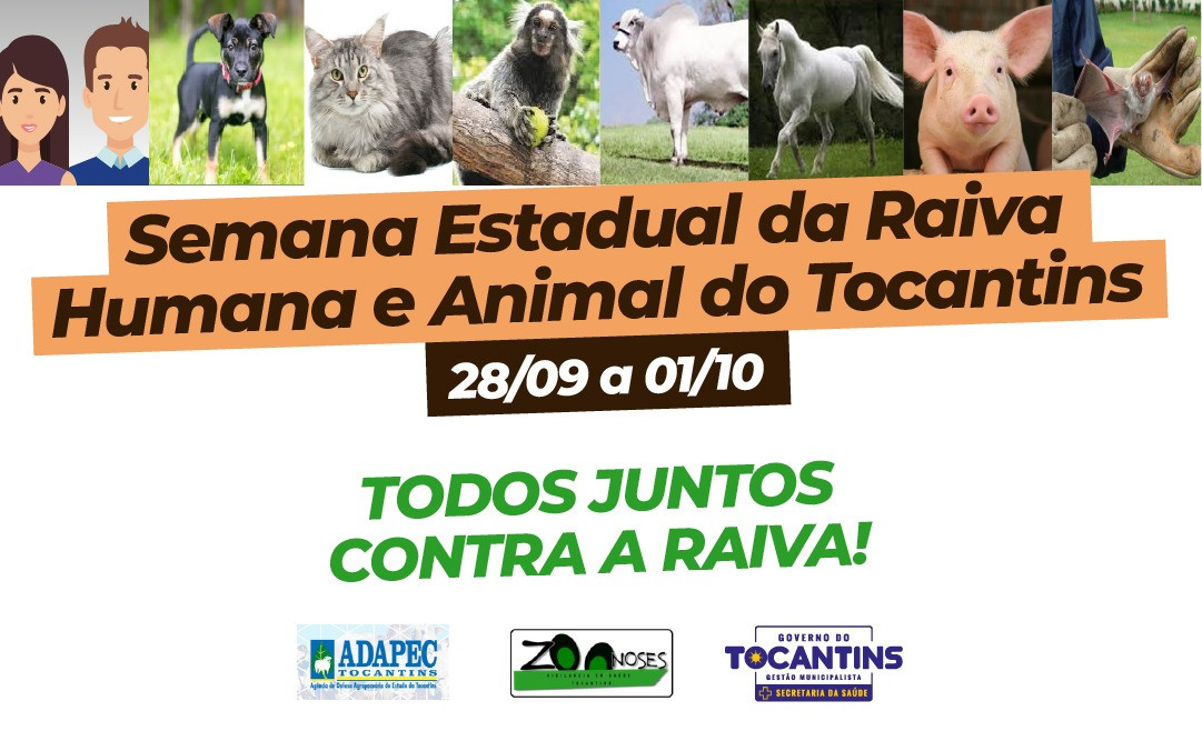 A Secretaria de Estado da Saúde (SES) e Agência de Defesa Agropecuária do Tocantins (Adapec), a fim de atualizar e sensibilizar os profissionais dos serviços de saúde humana e animal do Tocantins, quanto aos cenários epidemiológicos, ações de vigilância e de prevenção da raiva, promoverão entre os dias 28 de setembro a 1º de outubro, a Semana Estadual da Raiva Humana e Animal do Tocantins.