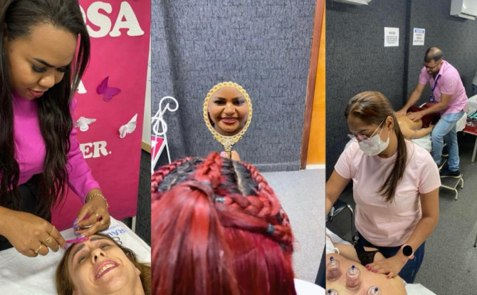 No período de 17 a 31 de outubro, foram ofertados serviços de massagens terapêuticas, penteados de cabelo, depilação, palestra com ginecologista e sobre saúde e estética avançada. As servidoras também tiveram a oportunidade de realizar consultas com mastologista e exames de USG da mama e transvaginal. A ação foi coordenada pelo Núcleo de Atenção à Saúde e a Segurança do Trabalhador (NASST) e Núcleo de Educação Permanente (NEP) do hospital.
