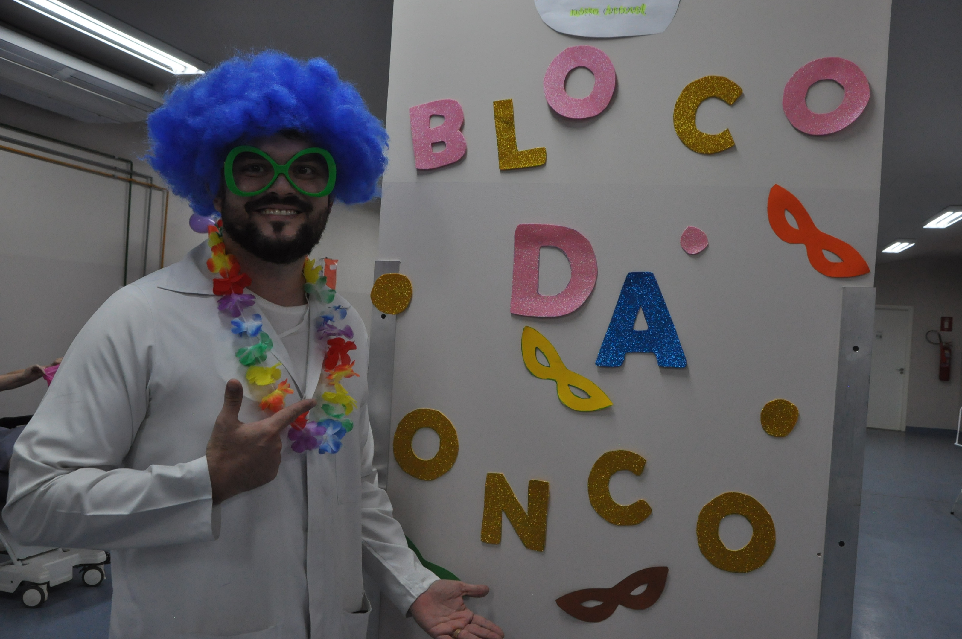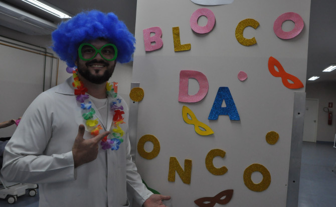 O enfermeiro Marcus Antônio Aguiar entrou na brincadeira com intuito de descontrair os pacientes e acompanhantes. “É uma forma de lembrar nossos pacientes da folia de Carnaval neste momento delicado de saúde, eles também tem direito à alegria e animação”, disse.