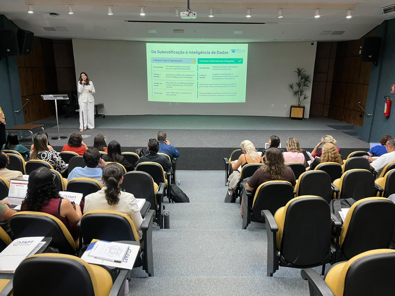 Na ocasião, a assessora técnica do Núcleo Estadual de Gestão e Estratégia da Segurança do Paciente (NEGESP), Gisele Luz, apresentou o projeto Notifica Saúde Tocantins, que propõe a criação de um sistema único para registro de eventos adversos nos hospitais do Tocantins. “A iniciativa visa integrar informações atualmente fragmentadas, permitindo o monitoramento em tempo real e a adoção de decisões mais assertivas, com foco na redução de riscos e na melhoria da qualidade da assistência”, ressaltou.
