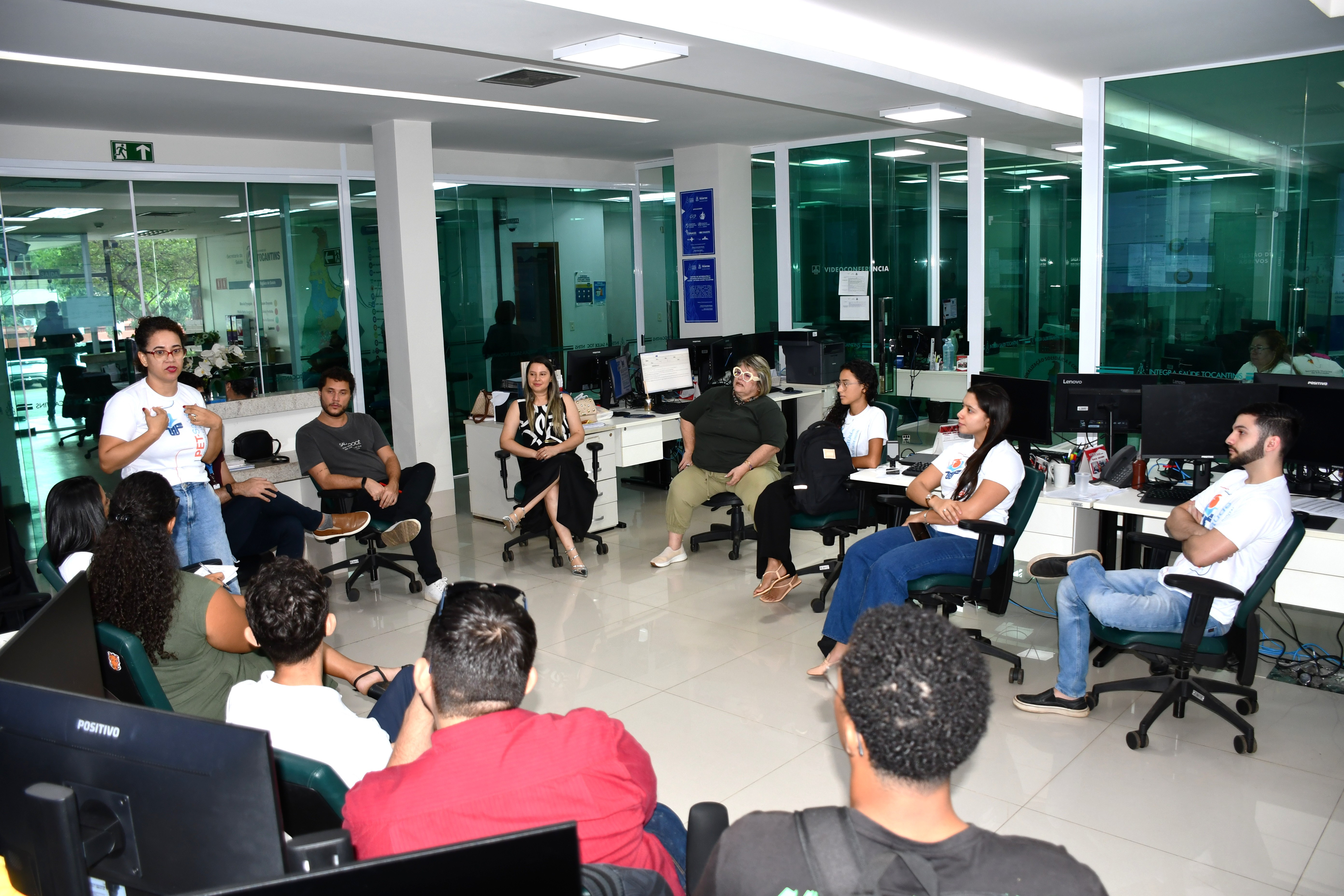 A Secretaria de Estado da Saúde (SES-TO) recebeu na segunda-feira, 29, acadêmicos da Universidade Federal do Tocantins (UFT) integrantes do Programa de Educação pelo Trabalho para a Saúde (PET-Saúde) e os professores tutores da UFT, Marco Túlio Câmara e Kênya Lima de Araújo. A visita ocorreu no Centro de Informações e Decisões Estratégicas para a Gestão da Saúde Pública.