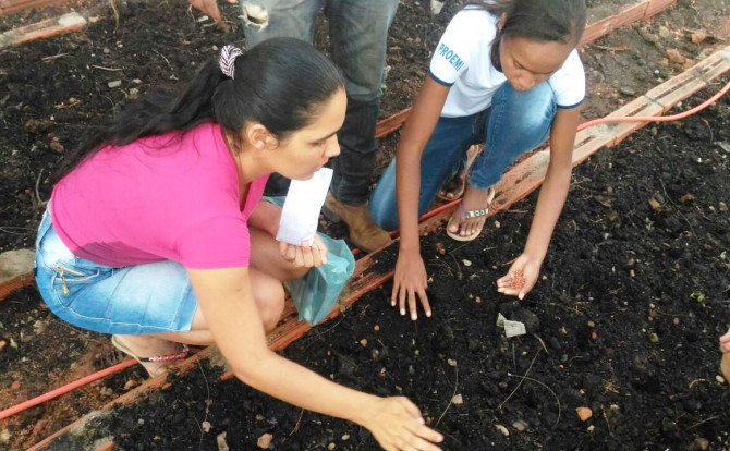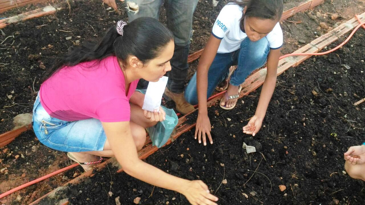 Durante a aula, os alunos auxiliaram no plantio de mudas de abóbora, quiabo, salsa e coentro. Juntamente com o agrônomo Rodrigo Robson Cavalcante, os estudantes tiveram a oportunidade de aprender como preparar o solo e qual é a medida certa entre uma cova e outra, para que as sementes sejam depositadas.