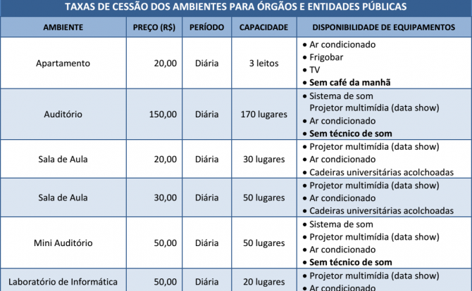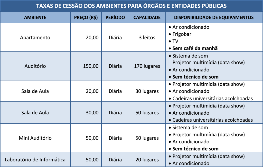 A locação e a cessão do espaço físico da Escola ocorre conforme disciplina a Portaria SEFAZ nº 229, de 27 de fevereiro de 2015, publicada no Diário Oficial nº 4.350, de 07 de abril de 2015.