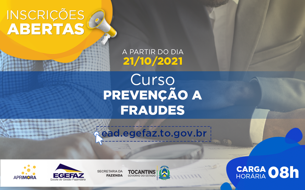 A Escola de Gestão Fazendária Antônio Propício de Aguiar Franco (Egefaz), abre, nesta quinta-feira, dia 21, inscrições para o curso Prevenção a Fraudes. As aulas começam no próximo dia 26 e têm como objetivo proporcionar aos servidores e estagiários da Secretaria da Fazenda(Sefaz) uma maior compreensão dos fenômenos relativos às fraudes e como combatê-las na gestão pública. Acesse aqui a inscrição.