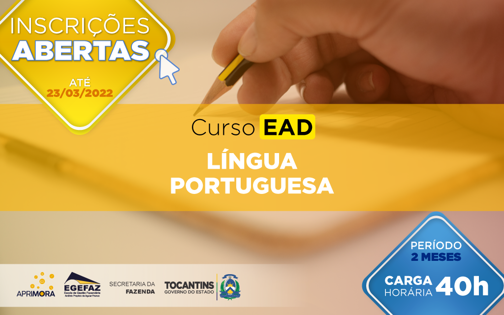 A Escola de Gestão Fazendária Antônio Propício de Aguiar Franco – Egefaz, abre no dia nove de fevereiro de 2022, as inscrições para o curso Língua Portuguesa, na modalidade Ensino a Distância – EAD, com carga horária de 40 horas. É aberto aos servidores da Secretaria da Fazenda e público em geral.