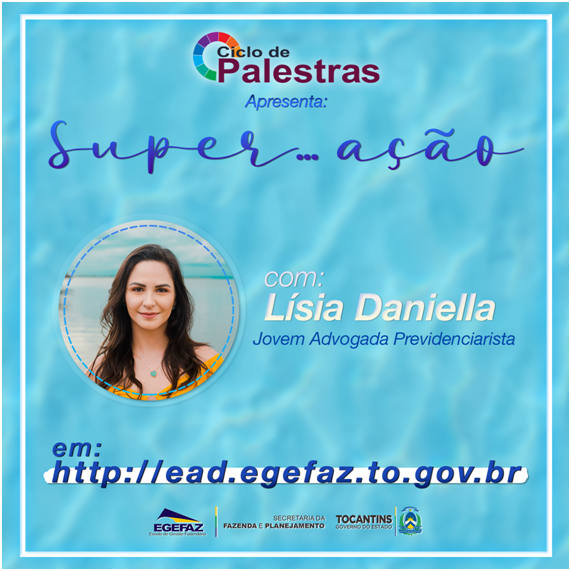 Escola de Gestão Fazendária Antônio Propício de Aguiar Franco (Egefaz), como as ações do Projeto Ciclo de Palestra, disponibilizou na manhã desta segunda-feira, 9, a palestra “Super Ação”, que no ser acessada no ambiente virtual ead.egefaz.to.gov.br, no tópico “Abrace-se”, espaço que visa provocar o servidor da Secretaria da Fazenda e Planejamento à reflexão, questionamentos e, consequentemente, mudança na forma de pensar, sentir e agir, estimulando a visão crítica de mundo a partir de si mesmo e/ou sob a perspectiva da experiência do outro.