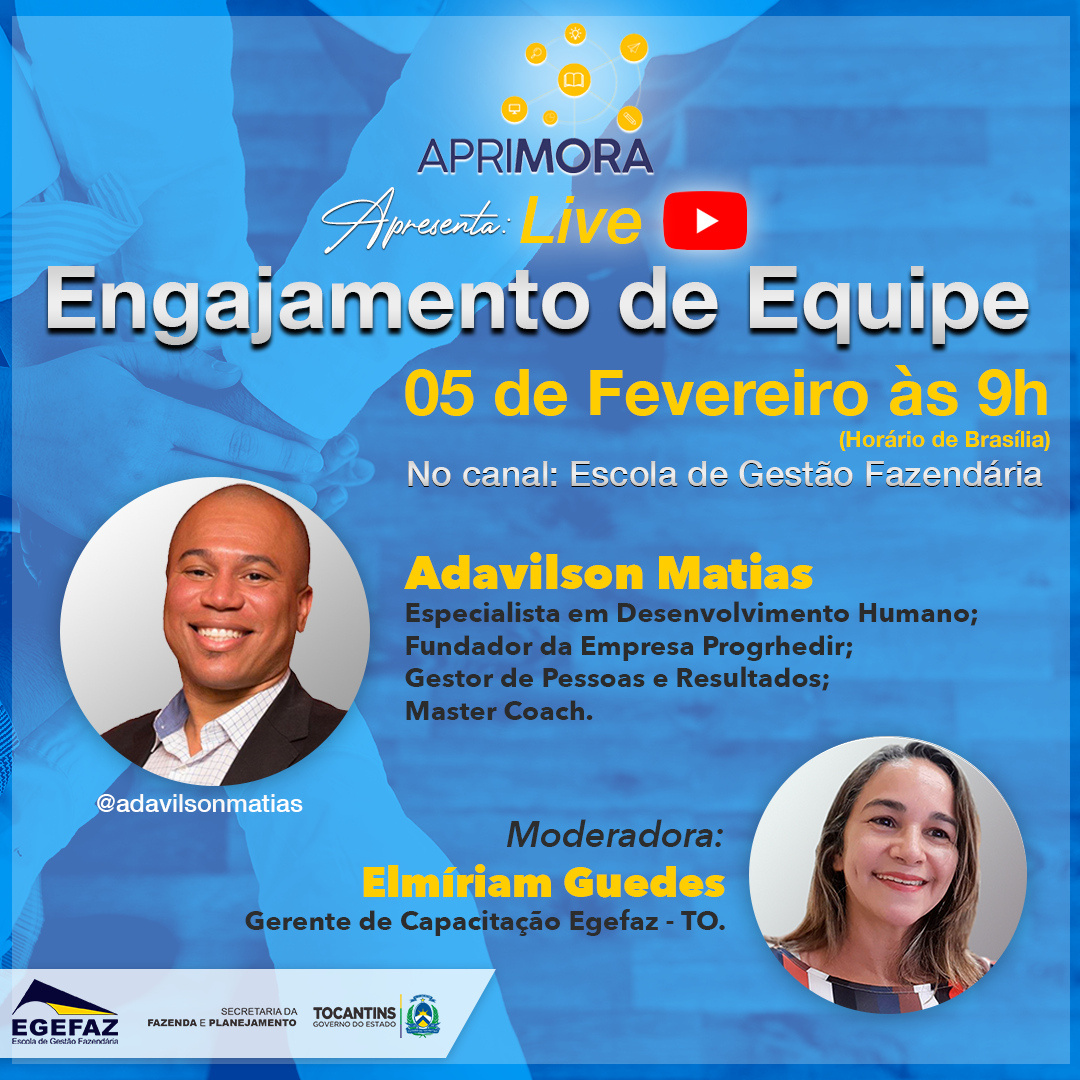 O palestrante Adavilson Matias, Especialista em Desenvolvimento de Pessoas, Gestor de Pessoas e Resultados, Master Coach e Fundador da Empresa Progredir em Cuiabá – Mato Grosso. A live Engajamento de Equipe será mediada pela Gerente de Programação, Capacitação e Educação, Elmíriam Guedes.