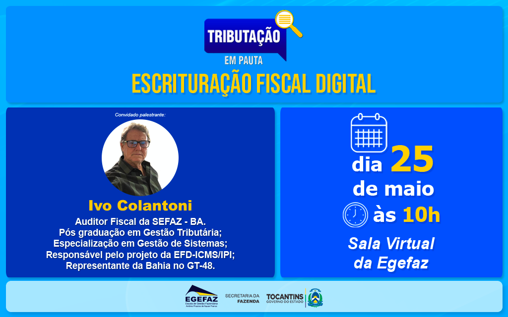 Neste primeiro encontro o palestrante convidado será Ivo Magnavita dos Santos, Auditor Fiscal da Secretaria da Fazenda do Estado da Bahia, que fará uma explanação sobre o tema: Escrituração Fiscal Digital – EFD.