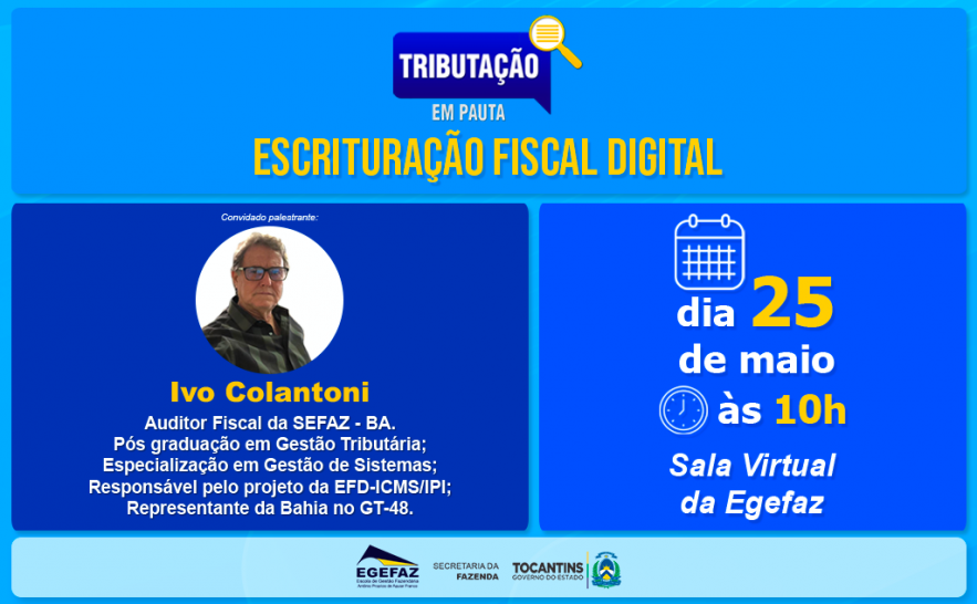 A Escola de Gestão Fazendária Antônio Propício de Aguiar Franco – Egefaz fará lançamento do Projeto Tributação em Pauta no dia 25 de maio de 2021, às 10h. O projeto tem por objetivo instituir um espaço virtual para que especialistas em Administração Tributária possam trocar informações, conhecimentos e experiências acerca do tema tributação.