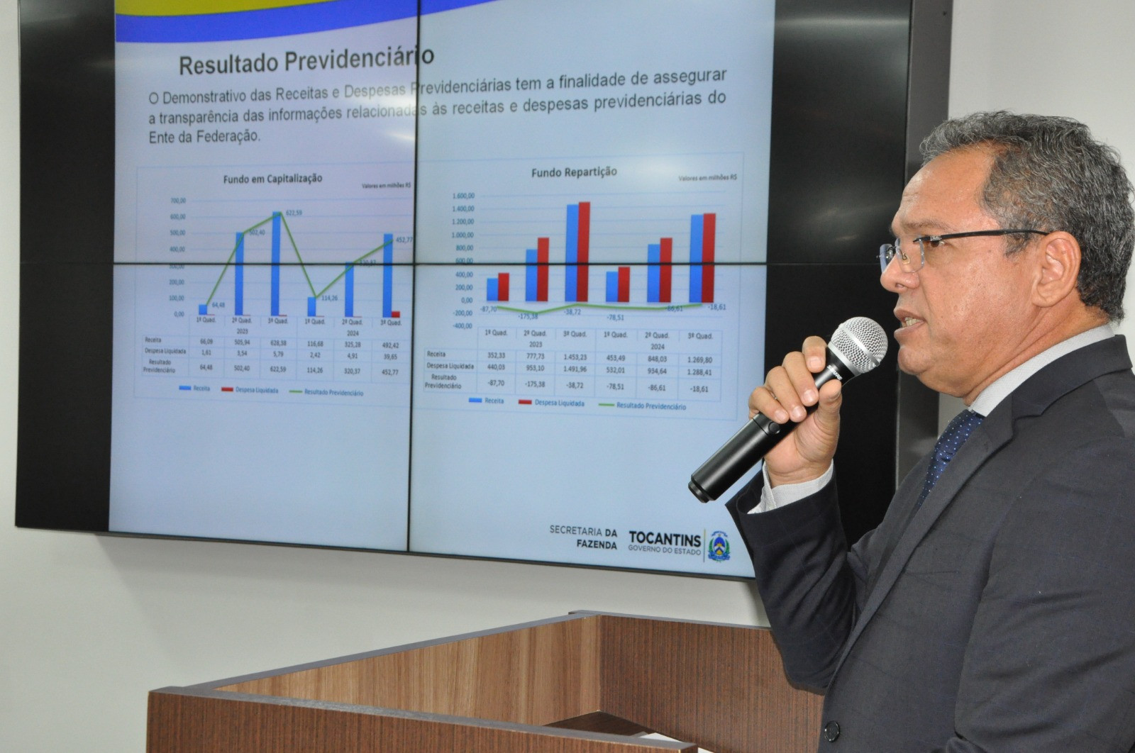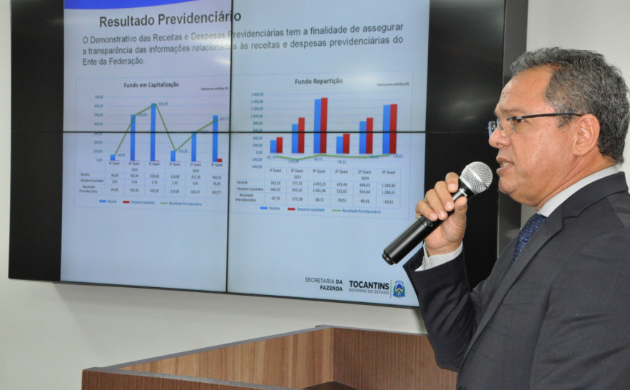 A Secretaria da Fazenda do Estado do Tocantins apresentou, em audiência pública, na Assembleia Legislativa, os resultados fiscais referentes aos três quadrimestres de 2024, conforme determina a Lei de Responsabilidade Fiscal (LRF). Os dados apresentados pelo secretário da Fazenda, Donizeth Silva, demonstram a evolução da Receita Corrente Líquida (RCL), os investimentos do governo e os limites de gasto com pessoal, entre outros indicadores econômicos. A sessão na Comissão de Finanças foi presidida pelo deputado Olinto Neto, estando presentes os deputados Júnior Geo e Eduardo Mantoan.