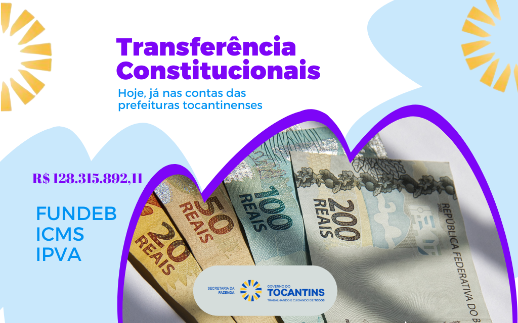 Os valores transferidos para cada município podem ser consultados no portal www.tranparencia.to.gov.br, aba Transferências Municipais.