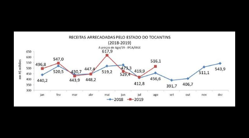 A receita tocantinense de ICMS acumulada de janeiro a agosto de 2019 foi de R$ 1,88 bilhão. Os números apontam um crescimento nominal de 6,58% e real de 2,52% em relação ao mesmo período de 2018. Essa informação está na edição do mês de Agosto/2019 da publicação Arrecadação – Análise das Receitas Estaduais, Recursos Ordinários Fonte 0100, na qual a Secretaria da Fazenda e Planejamento demonstra, mês a mês, a evolução das receitas que têm como origem principal a arrecadação de impostos e transferências constitucionais, cuja destinação, salvo as vinculações constitucionais, é o repasse aos outros poderes (duodécimos) e órgãos, folha de pagamento, transferências constitucionais a municípios, serviço da dívida, custeio dos órgãos do poder executivo, contrapartida de convênios, dentre outras.