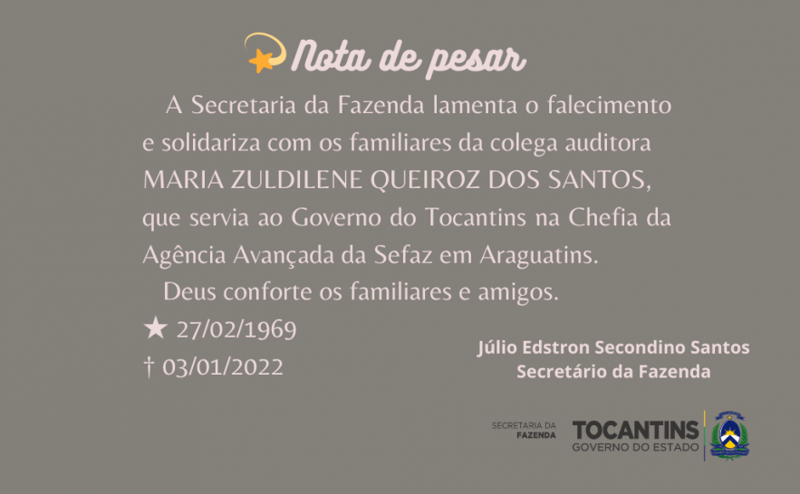 Nota de pesar - Maria Zuldilene Queiroz dos Santos