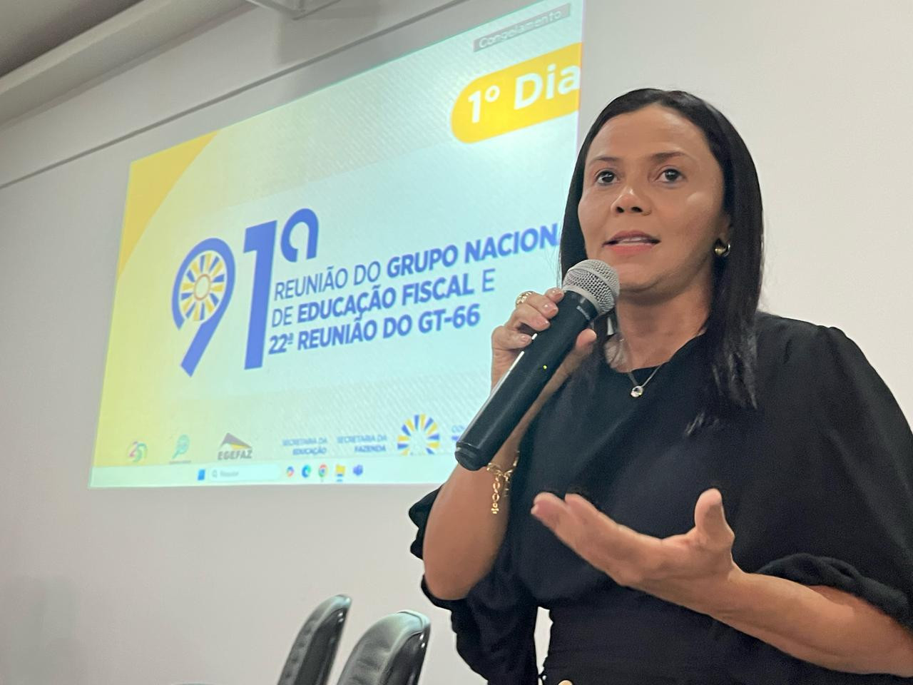 Representando o secretário da Educação, Fábio Vaz, a professora Rosângela Oliveira, ressaltou a importância das ações do Geef nas escolas. Ela usou como exemplo a Game Jam de Educação Fiscal, uma competição entre equipes, direcionado aos estudantes de ensino médio da rede pública estadual do Tocantins, focada no desenvolvimento de jogos digitais relacionados à educação fiscal.