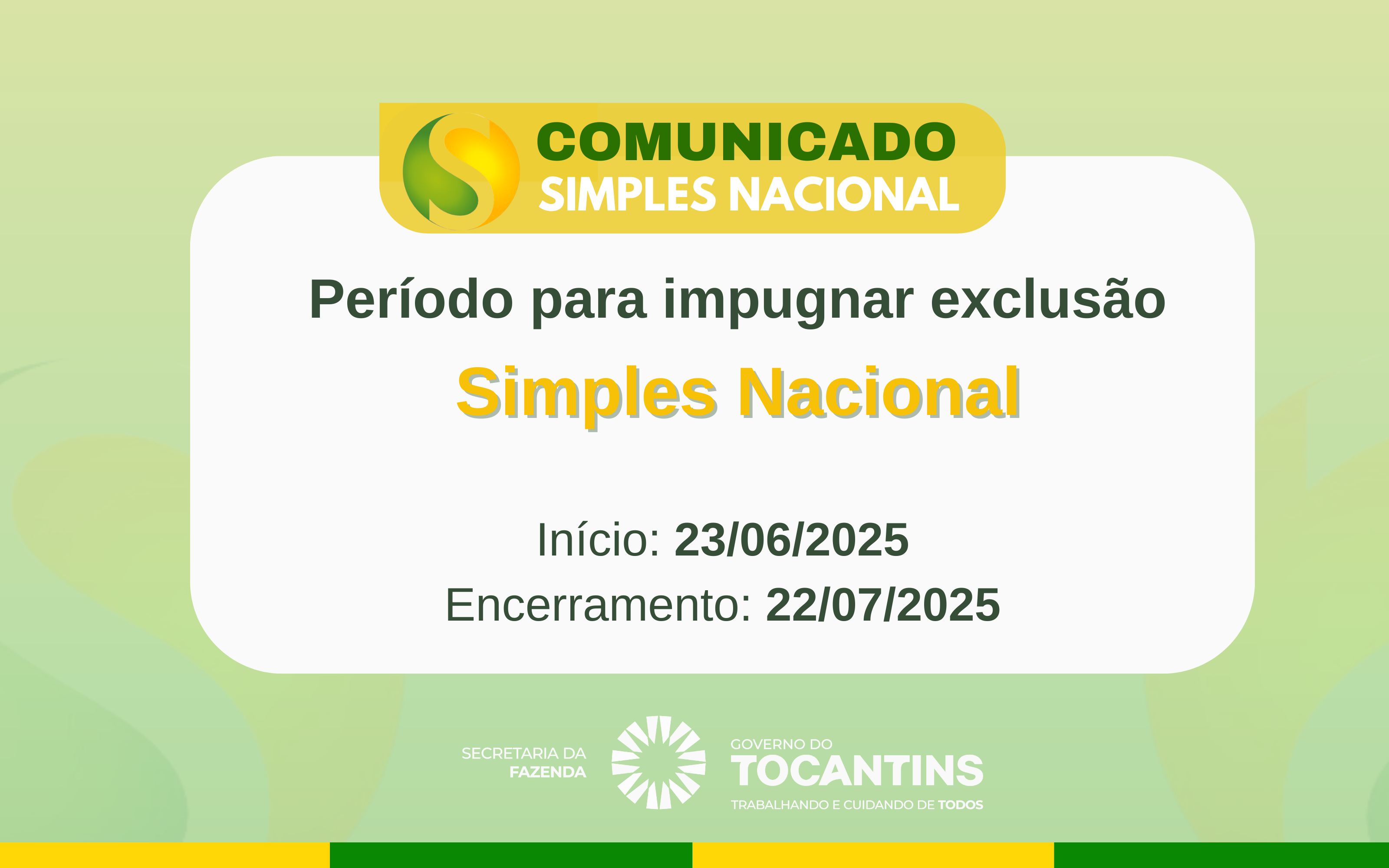 A Secretaria da Fazenda realizará a exclusão do Regime Especial Unificado de Arrecadação de Tributos e Contribuições devidos pelas Microempresas e Empresas de Pequeno Porte – Simples Nacional de todos os estabelecimentos que estão relacionados no Edital Notificação de Exclusão do Simples Nacional n.º 002/2025. – SAT/DIREC, DOE 6837, páginas 30/31.