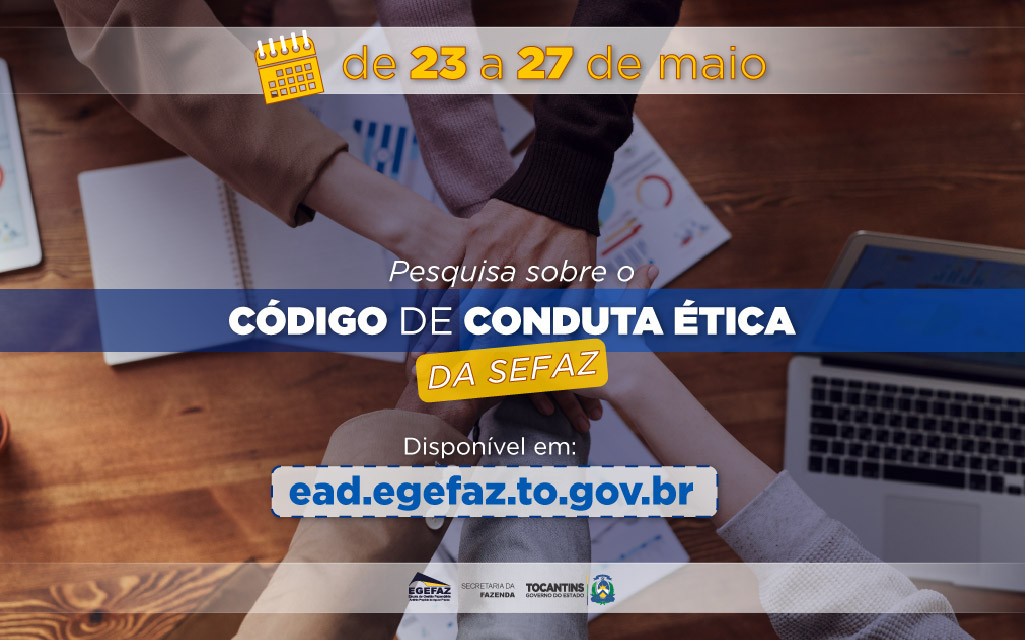 A Secretaria de Fazenda do Estado do Tocantins (SefazTO) realizará pesquisa sobre o novo Código de Conduta Ética da Sefaz (CCE-Sefaz), entre os dias 23 e 27 de maio de 2022. A ideia é colher junto aos servidores informações que tornem o documento compatível à realidade da pasta preservando os conceitos filosóficos e princípios legais que gerem condutas éticas em geral.