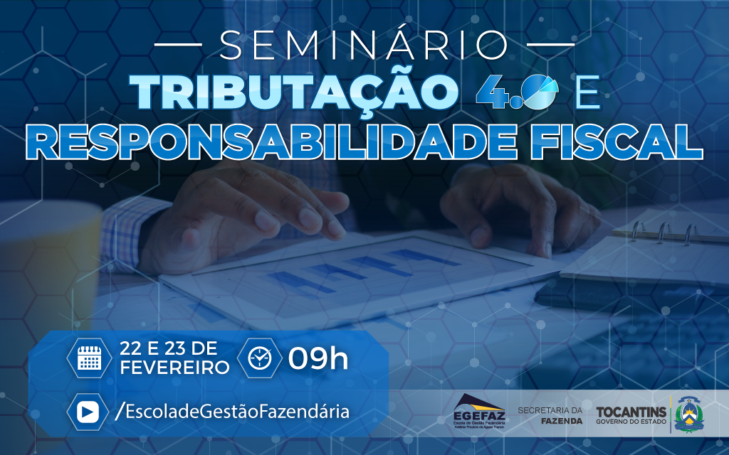 A Secretaria de Estado da Fazenda do Tocantins, por meio da Escola de Gestão Fazendária Antônio Propício de Aguiar Franco (Egefaz), promoverá nos dias 22 e 23 o I Seminário sobre Tributação 4.0 e Responsabilidade Fiscal do Estado do Tocantins. O objetivo é fomentar discussões e apresentar soluções sobre o papel do Estado e os principais desafios relacionados à arquitetura tributária dos novos modelos de negócios digitais.