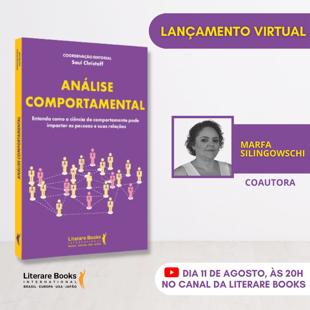 A servidora da Secretaria da Fazenda do Tocantins, Marfa Silingowschi, lotada na Escola de Gestão Fazendária, é coautora o livro Análise Comportamental: entenda como a ciência do comportamento pode impactar as pessoas e suas relações, que será lançado no próximo dia 11 de Agosto, a partir das 20h, no canal oficial da editora Literare Books, no youtube.