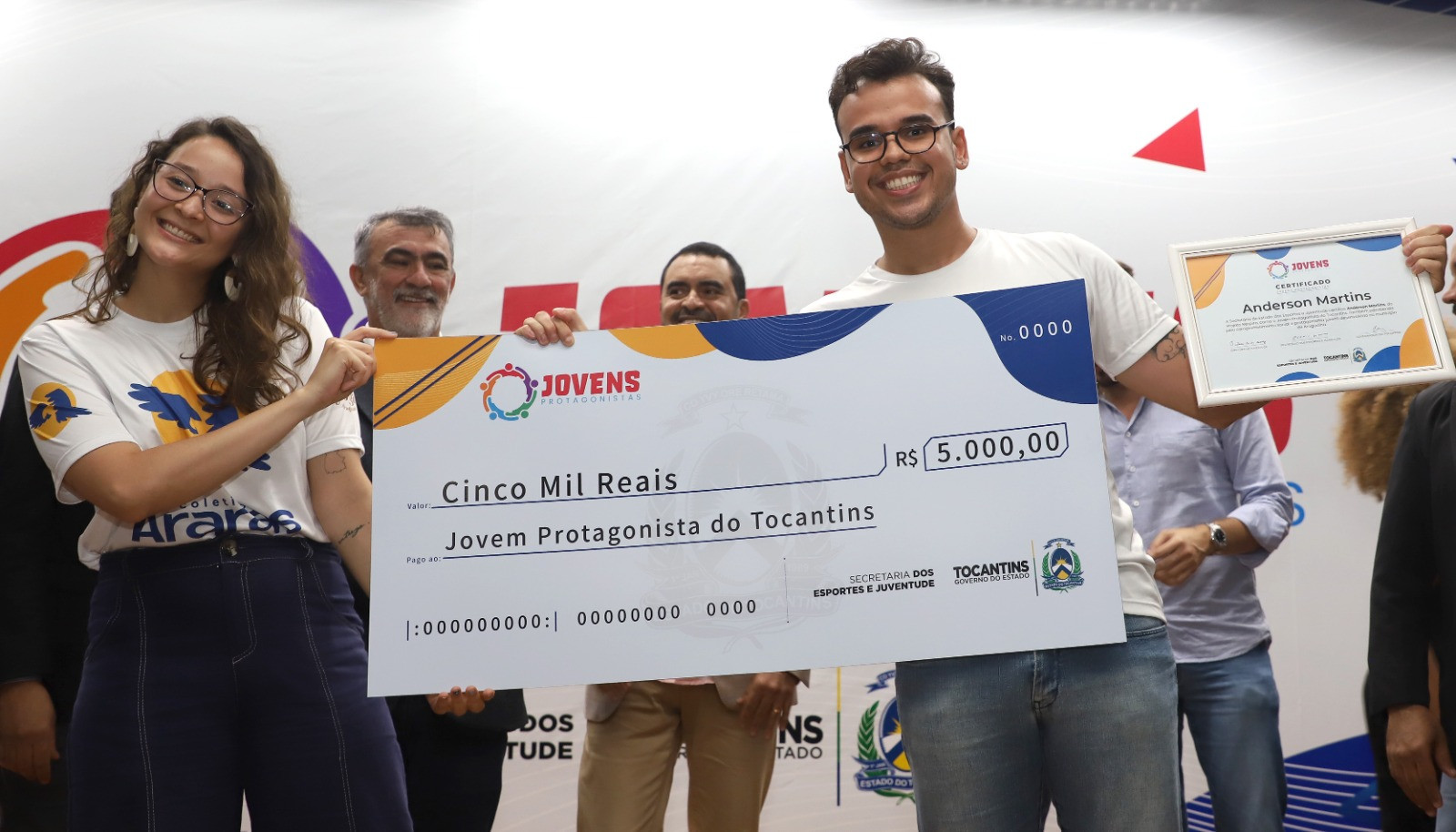 Anderson Martins foi escolhido por votação popular como o Jovem Protagonista do Tocantins. O araguainense procura democratizar através do Projeto Respira, o acesso de jovens adolescentes das escolas estaduais às práticas de yoga, ampliando a saúde mental e física por meio de acolhimento, atividades que impulsionem o autoconhecimento e técnicas de exercícios de autocuidado. O jovem foi premiado com um cheque simbólico que representa o Fundo Semente no valor de R$ 5 mil. “O nosso projeto vai passar por várias escolas de Araguaína com a intenção de promover saúde, qualidade de vida, bem-estar e falar de saúde mental”, disse.