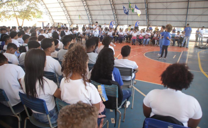 Desenvolvido pelo Governo do Tocantins, por meio da Secretaria de Estado dos Esportes e Juventude, o projeto Conecta Jovem segue com ações em alusão aos 10 anos do Estatuto da Juventude. Programação realizada nesta quarta-feira,16, na Escola Estadual Cívico-Militar Maria dos Reis Alves Barros, localizada no setor Taquari, em Palmas, contou com discussões sobre o Estatuto da Juventude, por meio de dinâmicas e apresentações culturais feitas por jovens estudantes da Capital.